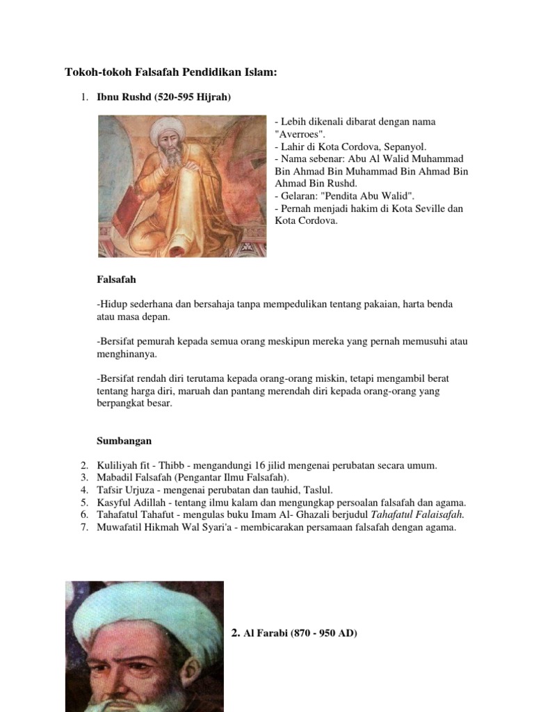 . Ibnu Rusyd Cendekiawan Muslim yang Dituduh Sesat. Al-Razi hidup di bawah pemerintahan Dinasti Saman. Definisi falsafah menurut Al-Farabi ialah sebuah ilmu menyelidik hakikat disebalik sebuah penciptaan.